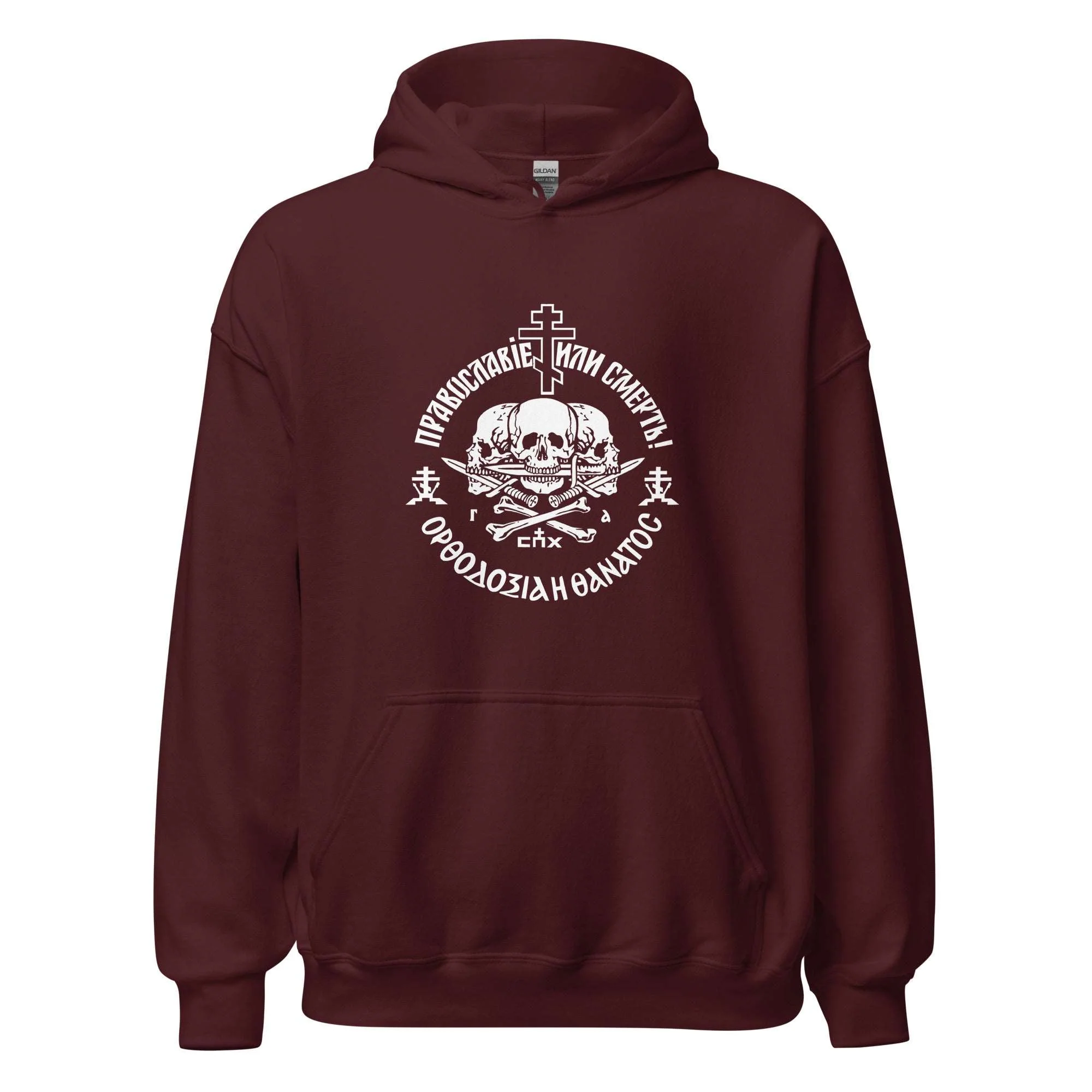 Our 'Orthodoxy or Death' hoodie to embody the resilience of Orthodox Christian faith. Inspired by the steadfast spirit of early Christian martyrs, this hoodie merges deep-rooted tradition with modern comfort. It's more than just apparelāit's a declaration of enduring faith and a testament to the spiritual battles faced by the Orthodox community. Perfect for daily wear, this bold statement piece keeps you connected to your heritage in every setting.