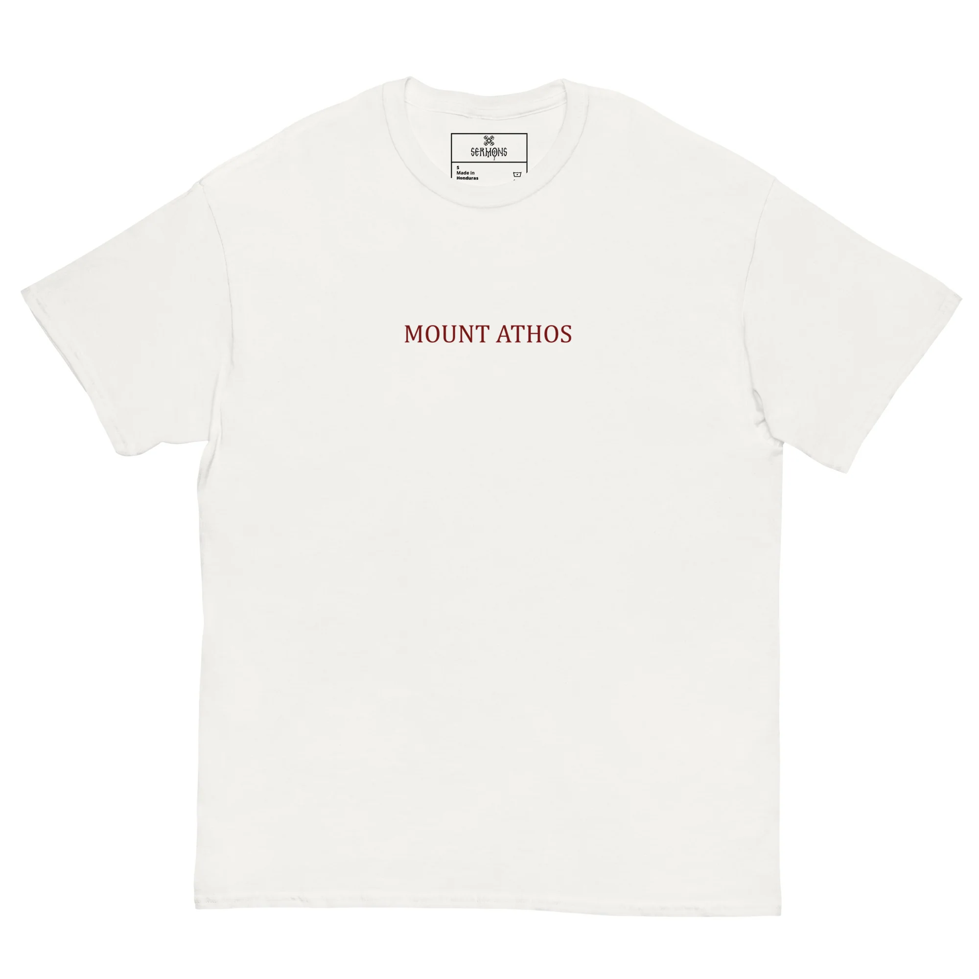 Introducing the Mount Athos T-Shirt in off White. The design honors the Holy Mountain, a bastion of unbroken prayer, repentance, and ascetic witness since 963 A.D.